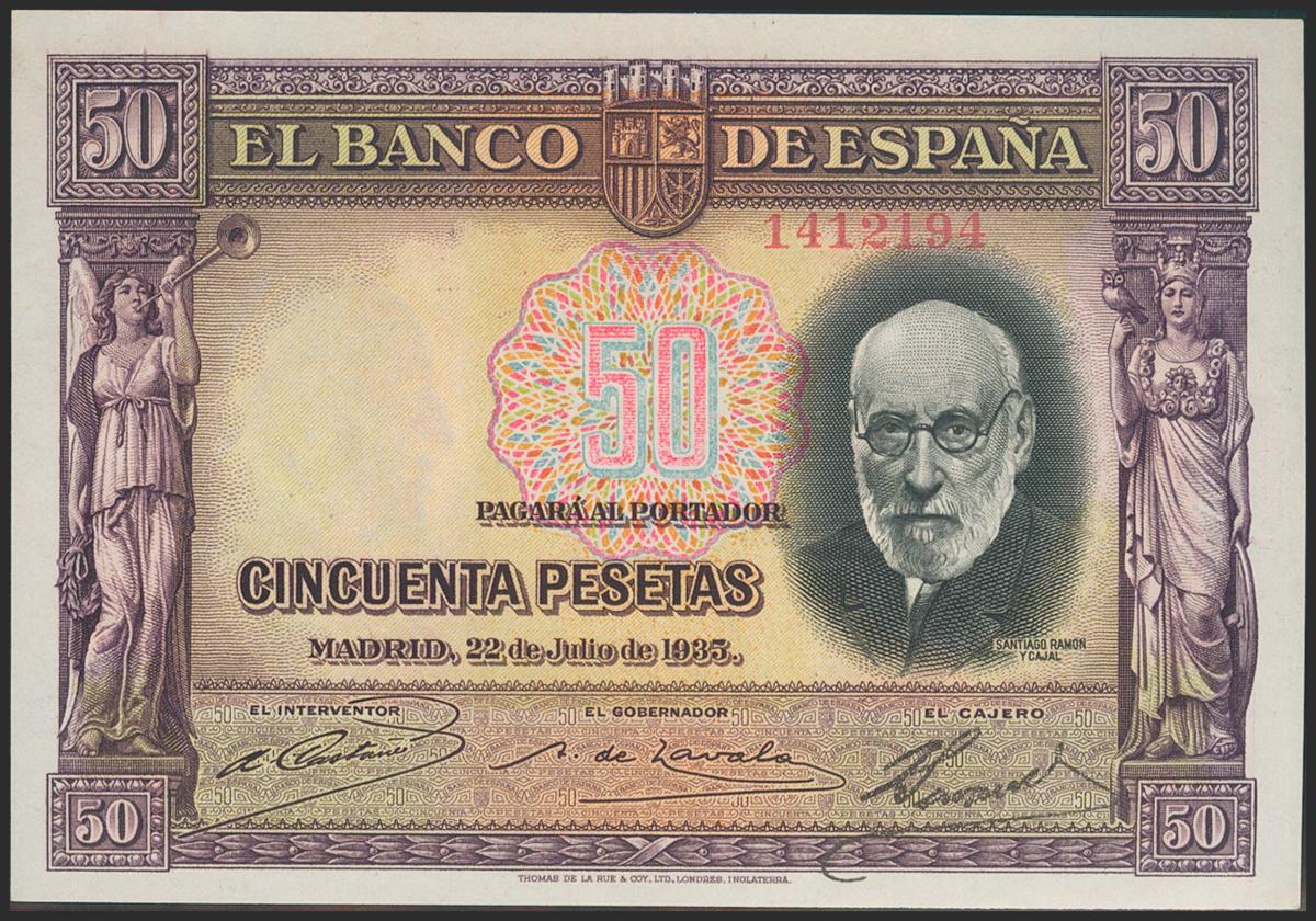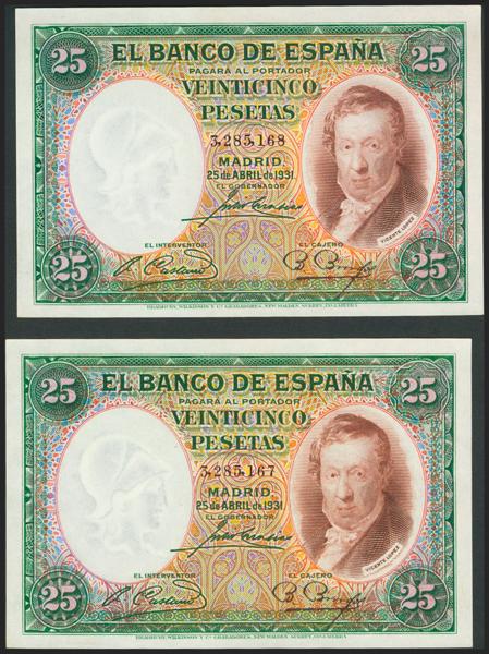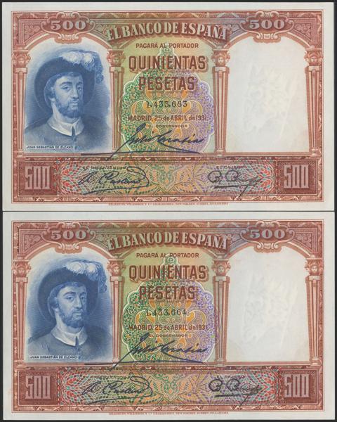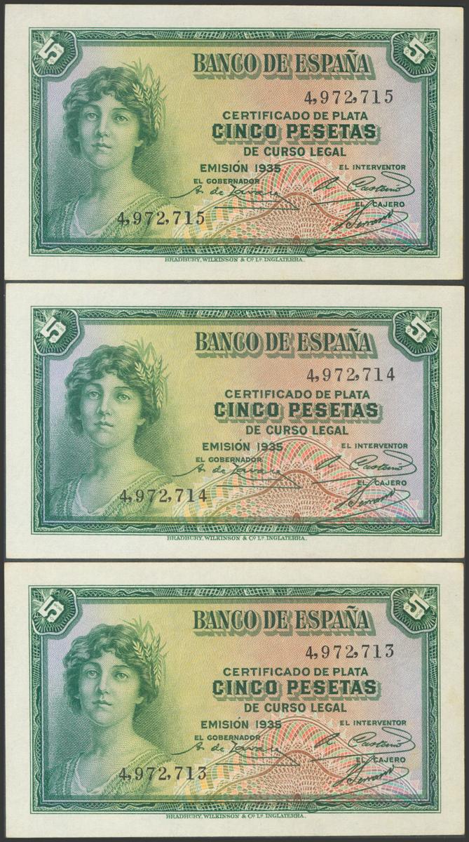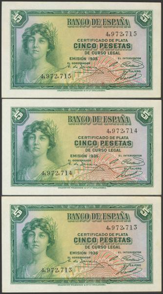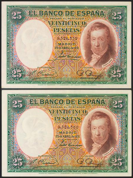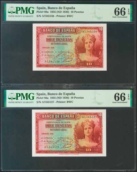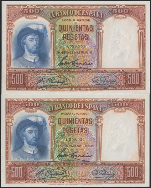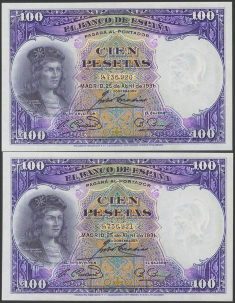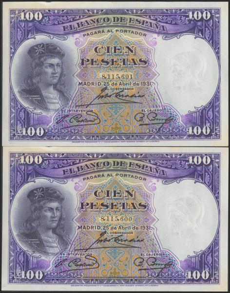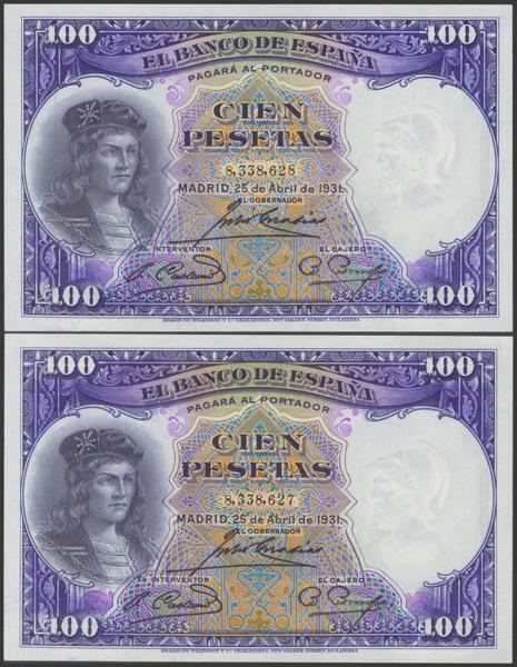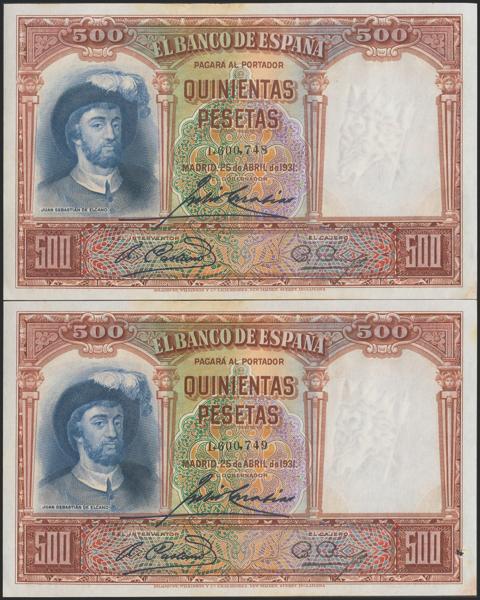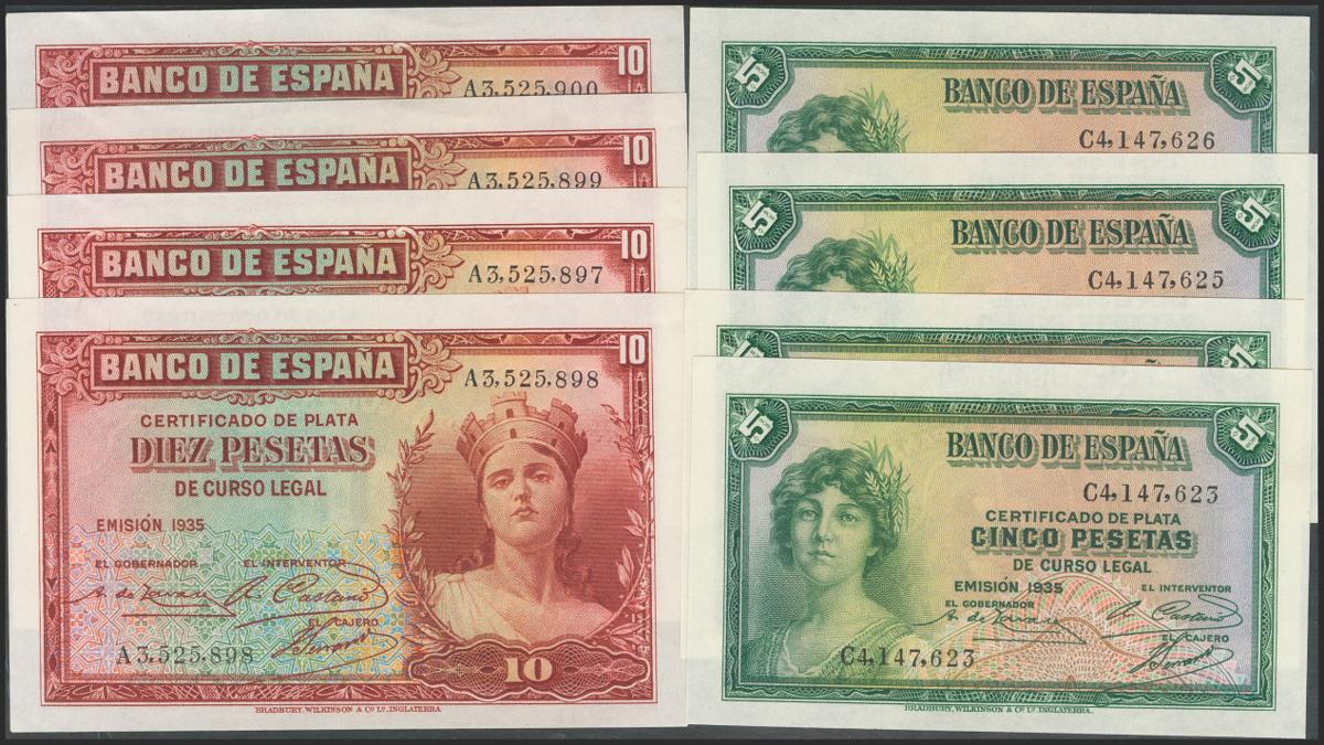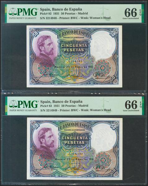 Conjunto de 4 billetes de 50 Pesetas todos correlativos sin serie (Edifil 2021: 358), conservan el apresto original. EBC+. (nos hacen llegar fotografía de estos billetes con un doblez-ondulación que no rompía fibra antes de ser ofrecidos en nuestra subasta y que ahora no observamos, por lo que tenemos que resaltar por un lado que los billetes han sido planchados, pero por otro lado también nos vemos obligados a remarcar que los billetes tienen un magnífico apresto original, y la rareza de encontrar 4 billetes consecutivos).