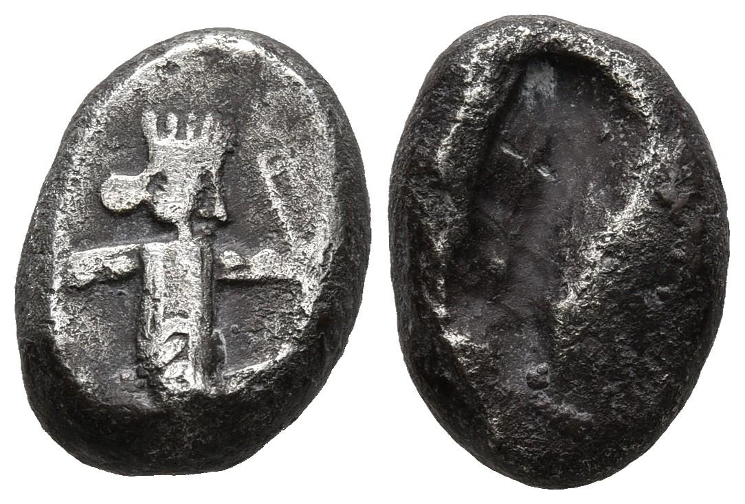 IMPERIO AQUEMENIDA, Tiempo de Xerxes II a Artaxerxes II. Siglos. (Ar. 4,44g/16mm). 420-350 a.C. Sardes. (BMC Arabia 175-177). Anv: Rey persa arrodillado a derecha portando arco y lanza. Rev: Incuso. MBC.