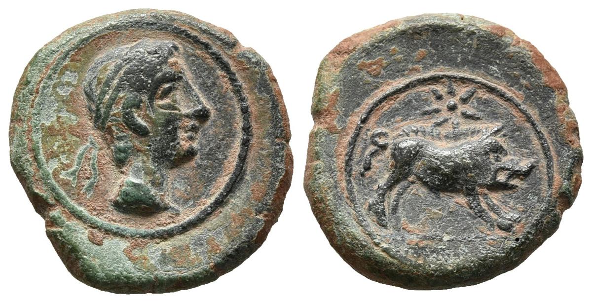 CASTULO (Cazlona, Jaén). Cuadrante. (Ae. 3,22g/17mm). 180 a.C. (FAB-733). Anv: Cabeza masculina diademada a derecha. Rev: Jabalí a derecha, debajo leyenda ibérica: CaSTeLE. EBC-/EBC. Precioso ejemplar.