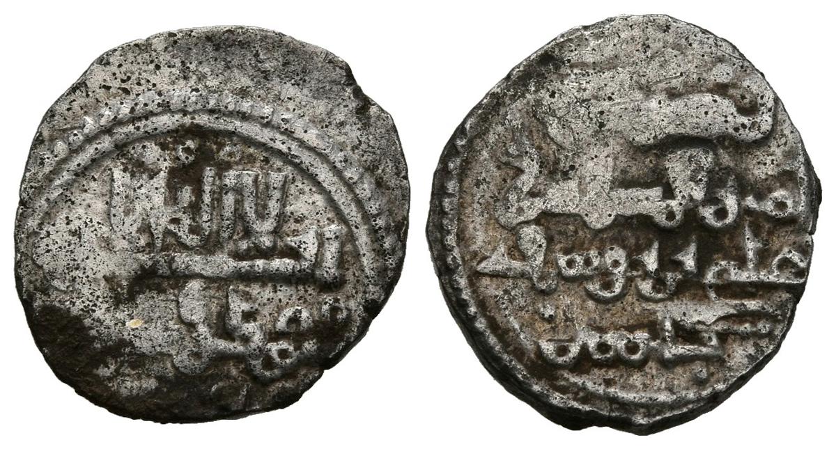 ALMORAVIDES, Alí Ibn Yusuf. Quirate. (Ar. 0,90g/12mm). 500-537H. Fas (Fez). (Similar a Vives 1773; Hazard 980; FBM Ce4, todas sin ceca pero con el mismo titulo Nasr Allah). Leyenda en reverso: Nasr Allah/amir al-Muslimín/´Alí bin Yusuf. MBC-. Muy rara e inédita.
