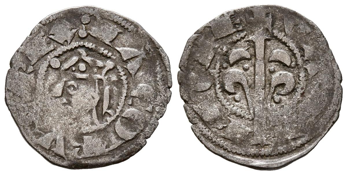 JAIME I (1213-1276). Dinero. (Ve. 1,02g/18mm). Valencia. (Cru.V.S. 316). Anv: Busto coronado de Jaime I a izquierda dentro de gráfila, alrededor leyenda: IACOBVS REX. Rev: Arbol con las ramas bajas dentro de gráfila, alrededor leyenda: VALENCIE. MBC.