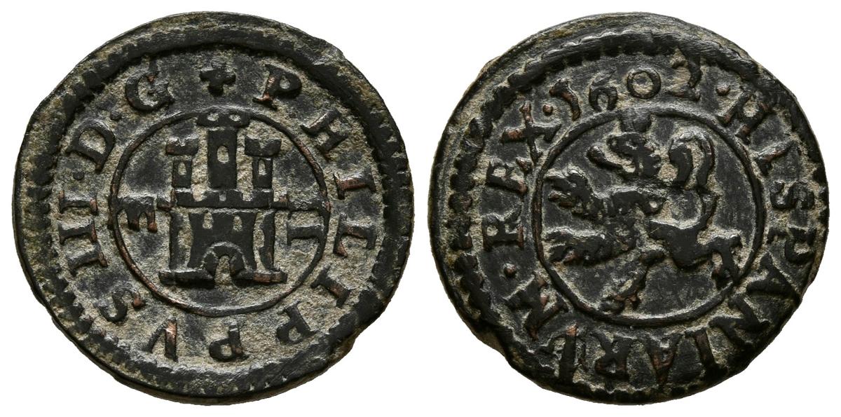FELIPE III (1598-1621). 2 Maravedís (Ae. 1,67g/16mm). 1602. Segovia. (Cal-2019-184). Acueducto horizontal. MBC.