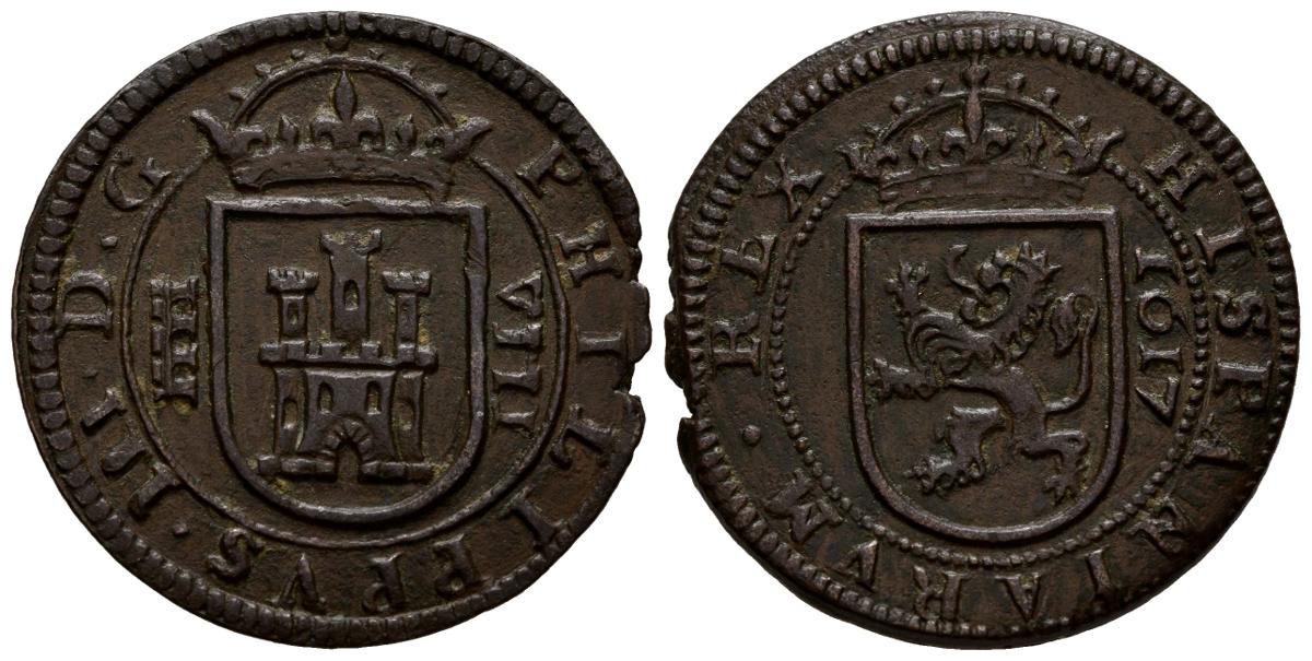 FELIPE III (1598-1621). 8 Maravedís (Ae. 6,33g/28mm). 1617. Segovia. (Cal-2019-334). EBC. Cospel faltado.