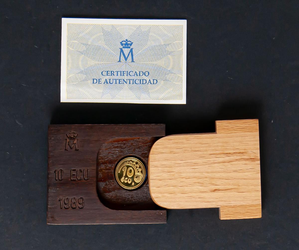 JUAN CARLOS I (1975-2014). 10 Ecu. (Au. 3,45g/16mm). 1989. FNMT. Madrid. PROOF. Incluye estuche original y certificado de autenticidad. Tirada de sólo 50 mil unidades.El importe de la liquidación de este lote irá destinado a Manos Unidas.