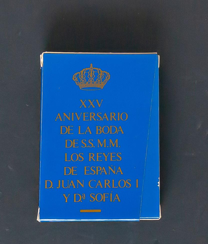 JUAN CARLOS I (1975-2014). 500 Pesetas. Pruebas de la FNMT. Estuche conmemorativo XXV Aniversario de la Boda de los Reyes Juan Carlos I y Sofía. El set incluye 6 monedas y librito "Así nace una moneda". 1987. SC.