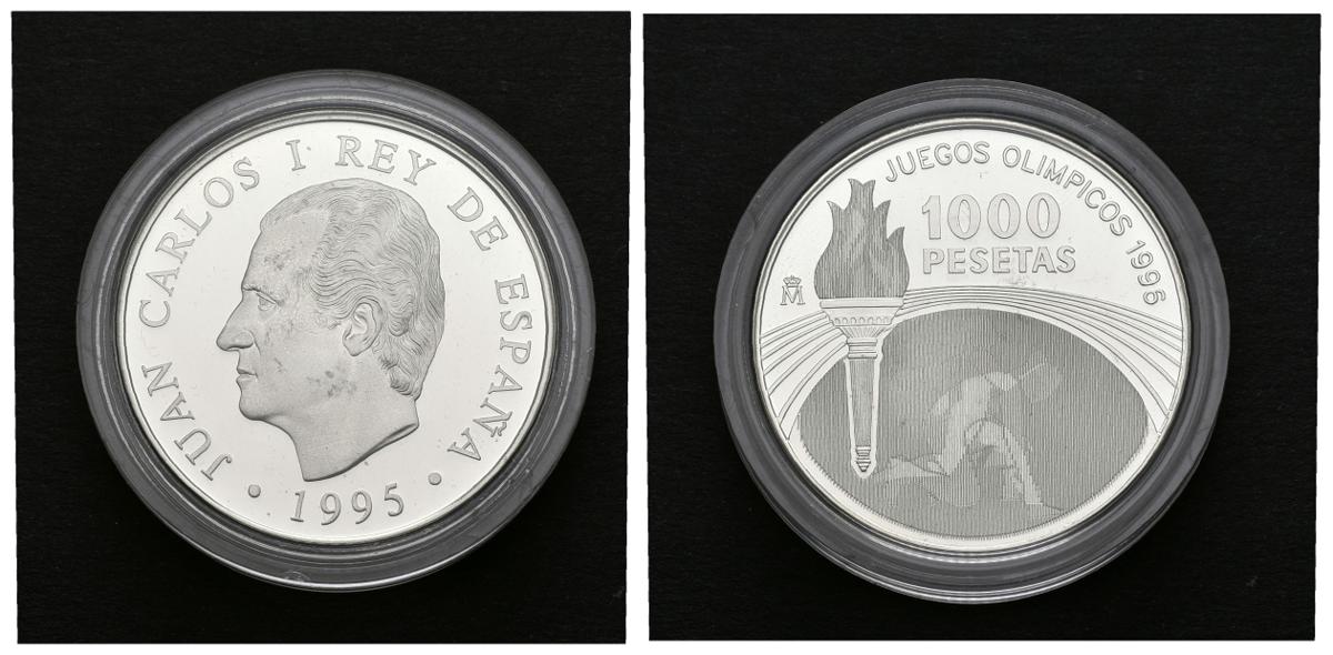 JUAN CARLOS I. 1000 Pesetas. (Ar. 13,50g/33mm). 1996. "JUEGOS OLIMPICOS 1996". Presentada en estuche oficial con certificado. PROOF.