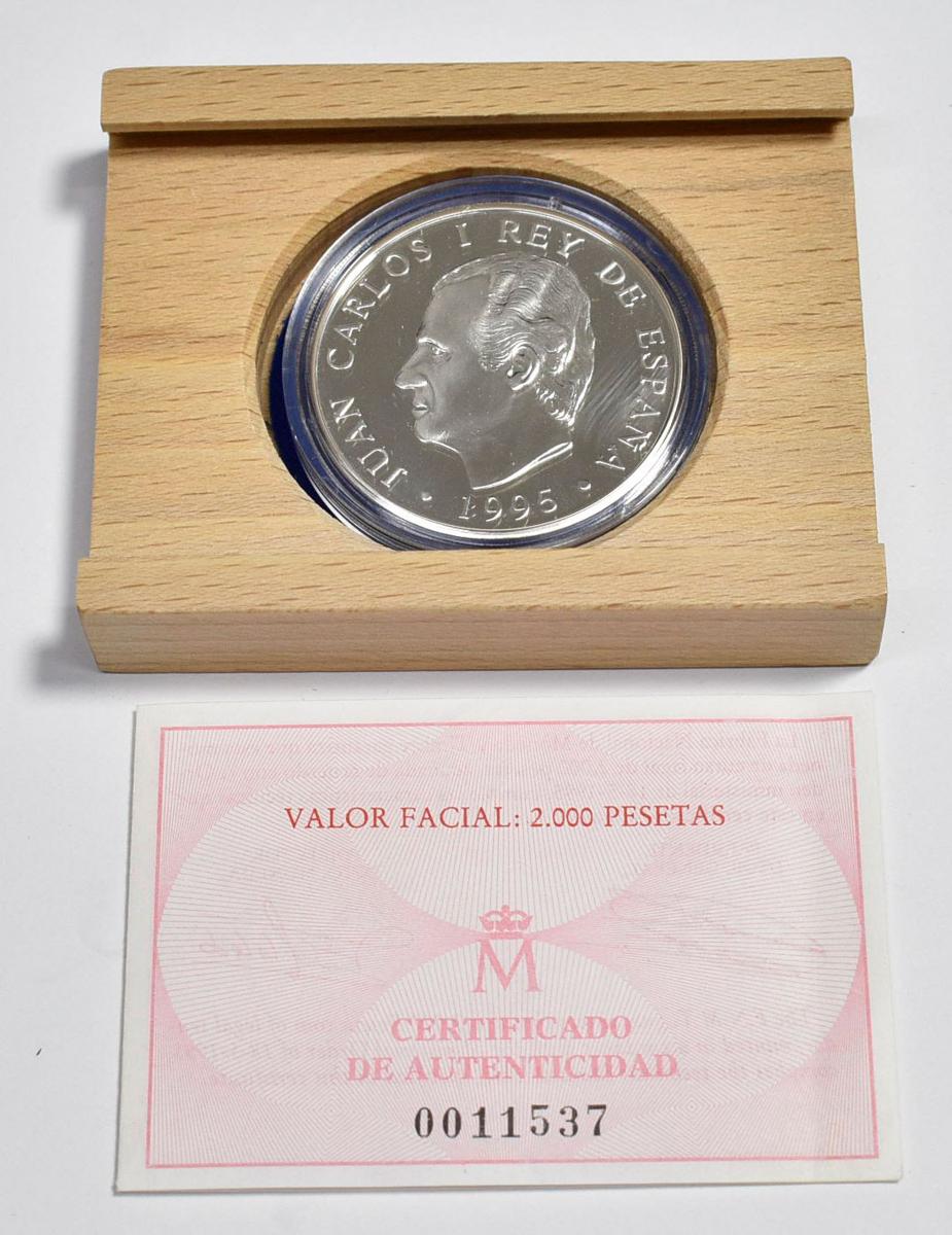JUAN CARLOS I (1975-2014). 2000 Pesetas. (Ar. 27,00g/40mm). 1995. FNMT. 50 Aniversario de la ONU. PROOF. 120.000 unidades acuñadas. Presentada en estuche oficial con certificado de autenticidad.