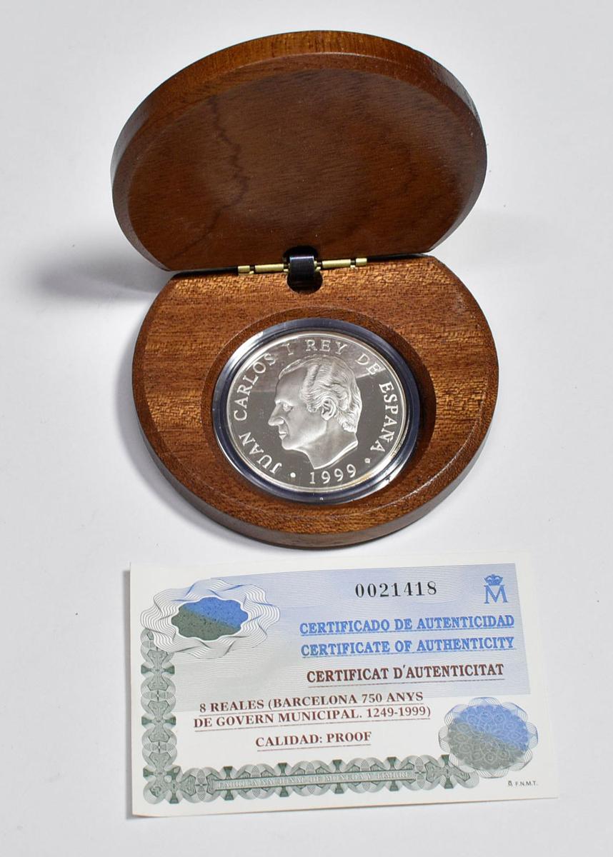 JUAN CARLOS I (1975-2014). 2000 Pesetas. (Ar. 27,00g/40mm). 1999. FNMT. 750 Anys de Govern Municipal de Barcelona. PROOF. 30.000 unidades acuñadas. Presentada en estuche oficial con certificado de autenticidad.