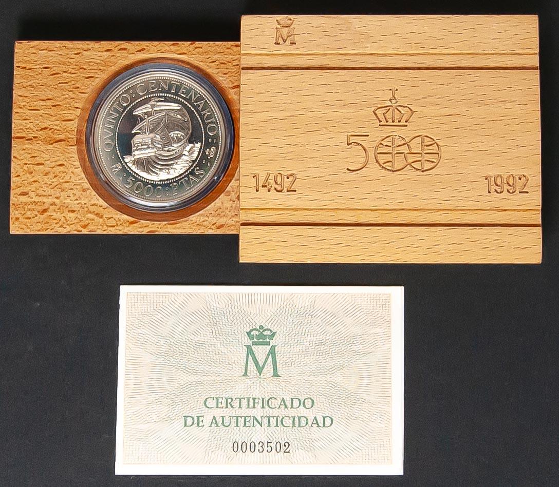 JUAN CARLOS I (1975-2014). 5000 pesetas. (Ar. 54.00g / 40mm). Serie I. Quinto Centenario. 1989. FNMT. PROOF. Presentada en estuche oficial con certificado de autenticidad.
