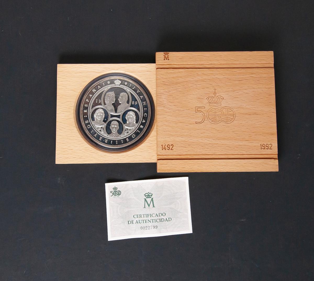 JUAN CARLOS I (1975-2014). 10000 Pesetas. (Ar. 168,75g /73mm). Serie I. Quinto Centenario. 1989. FNMT. Flor de cuño. Incluye estuche oficial y certificado de autenticidad. 60 mil unidades acuñadas.