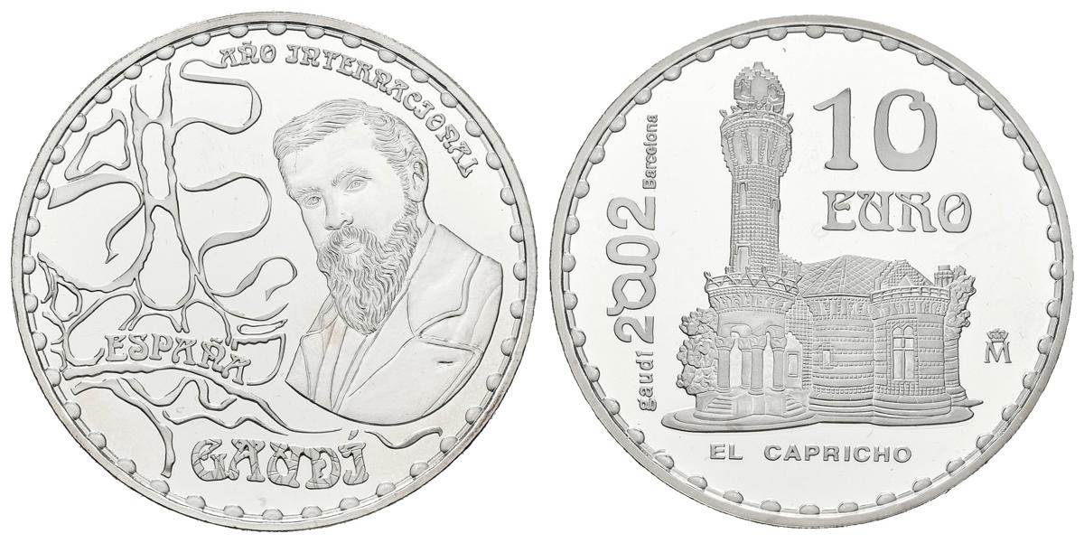 JUAN CARLOS I (1975-2014). 10 Euros (Ar. 27,00g/40mm). 2002. El Capricho. Gaudí. (Km#1083). PROOF. Incluye estuche original y certificado de autenticidad. Tirada de 25000 ejemplares.