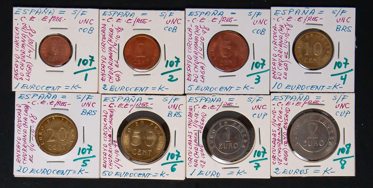 JUAN CARLOS I (1975-2014). Serie completa de los Euros de Churriana. 8 valores desde 1 céntimo a 2 euros. SC.