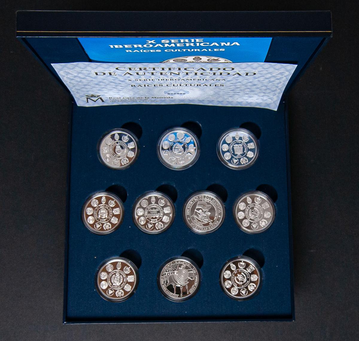 FELIPE VI (2014-?). Set compuesto por 9 monedas y 1 medalla todas ellas en plata de 0,925 milésimas correspondientes a la X Serie Iberoamericana Raices Culturales. 2015. FNMT. En estuche original y con certificado de autenticidad. PROOF. Impecable estado.Tirada de 10.000 ejemplares.