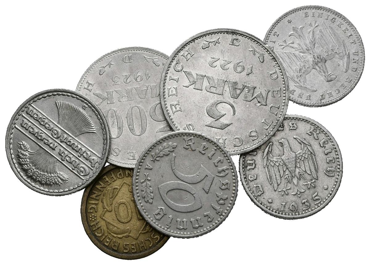 ALEMANIA. Conjunto de 7 monedas de diferentes módulos acuñadas durante la República de Weimar y el periodo del nazismo. Buen nivel de conservación en general. A EXAMINAR.