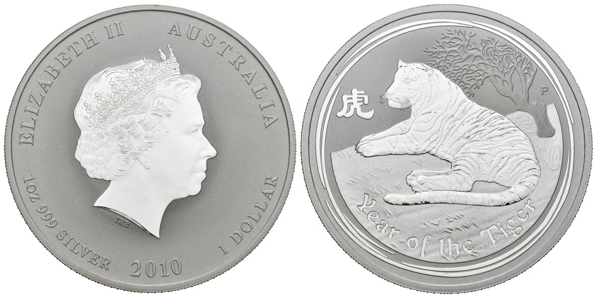 AUSTRALIA. 1 Dollar (Ar. 31,62g/40mm). 2010. Año del Tigre. (Km#1317). Plata de 0,999 milésimas. PROOF.