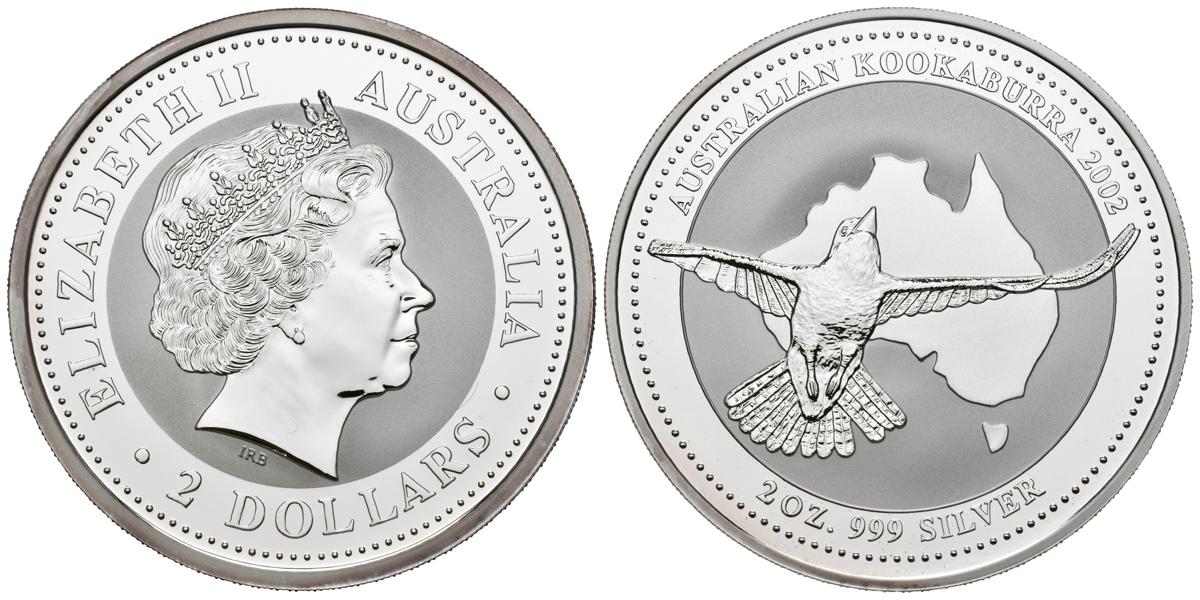 AUSTRALIA. 2 Dollars (Ar. 62,95g/50mm). 2002. Kookaburra. (Km#678). Plata de 0,999 milésimas. PROOF.