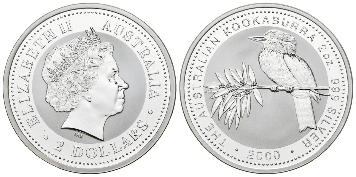 AUSTRALIA. 2 Dollars. (Ar. 62,69g/50mm). 2000. Kookaburra. (Km#417.1). Plata de 0,999 milésimas. PROOF.