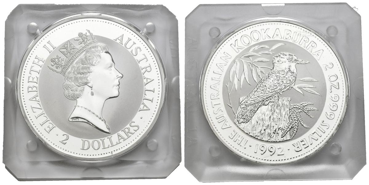 AUSTRALIA. 2 Dollars. (Ar. 62,69g/50mm). 1992. Kookaburra. (Km#227). Plata de 0,999 milésimas. PROOF.