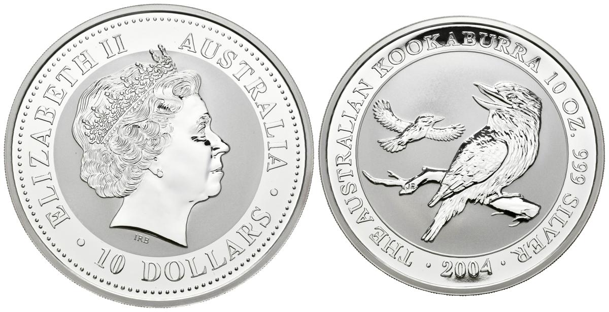 AUSTRALIA. 10 Dollars (Ar. 312,00g/73mm). 2004. Kookaburra. Plata de 0,999. PROOF.