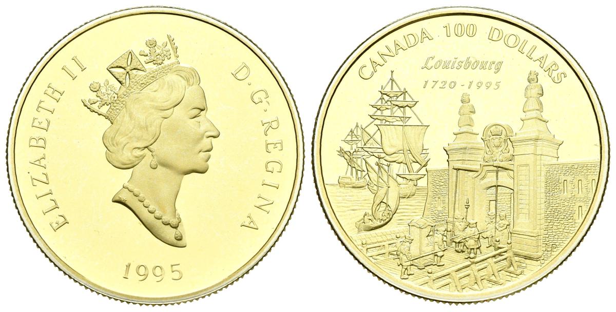 CANADA. 100 Dollars (Au-Ar. 13,36g/27mm). 1995. Louisbourg. (Km#260). Proof. Incluye certificado de autenticidad y estuche original. Composición en oro 58,3%.