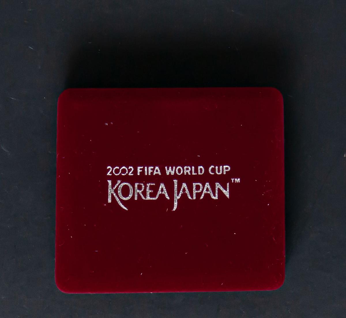 COREA DEL SUR. 10.000 Won. (Ar. 31,10g/35mm). 2001. Mundial FIFA 2002 de Corea. 2 Futbolistas disputando balón. (Km#91). PROOF. Incluye estuche original y certificado de autenticidad.