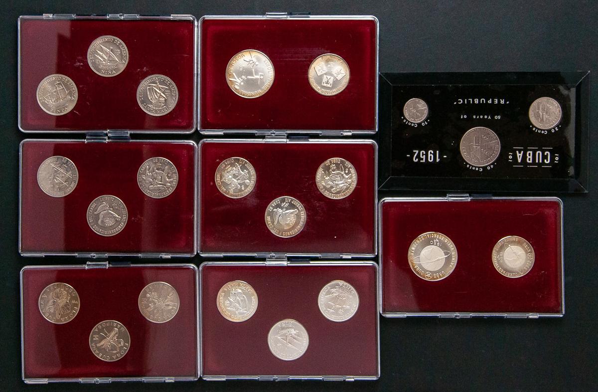 CUBA. Conjunto formado por 22 monedas conmemorativas cubanas del siglo XX expuestas en estuches y con diferente temática: 50 Años de República, 1º Vuelo espacial conjunto Cuba-URSS, Descubrimiento de América… Todas las piezas sin circular y un buen número de ellas en plata . A EXAMINAR.