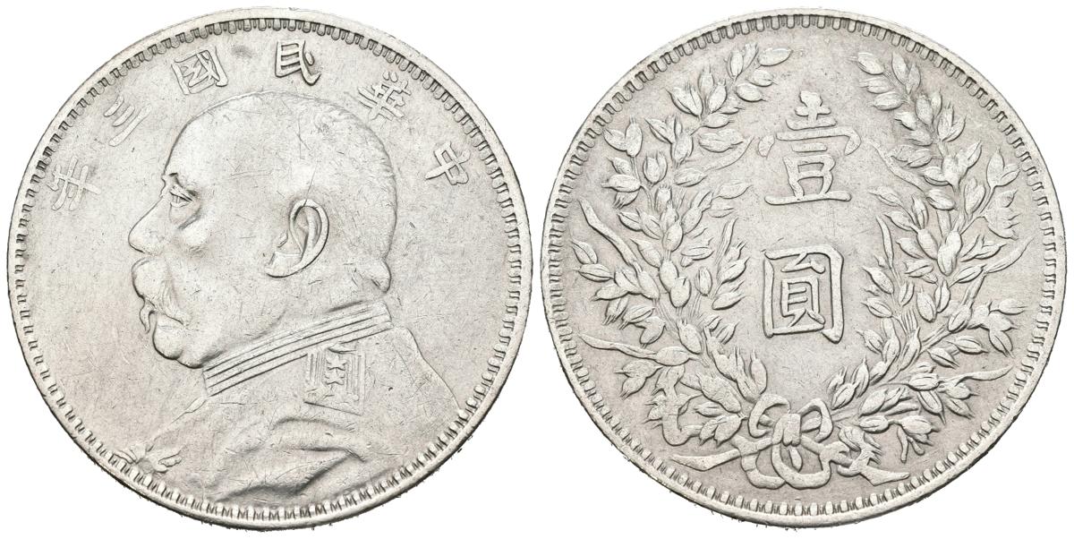 CHINA. 1 Yuan. (Ar. 26,30g/39mm). 1914 (Año 3). República de China. Yuan Shikai. (Km#329). MBC.
