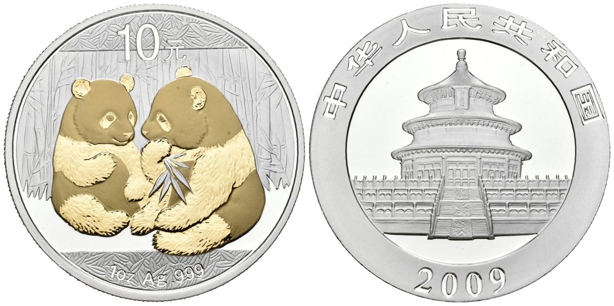 CHINA. 10 Yuan (Ar. 31,37g/40mm). 2009. Serie Pandas. Plata de 0,999 milésimas. PROOF.