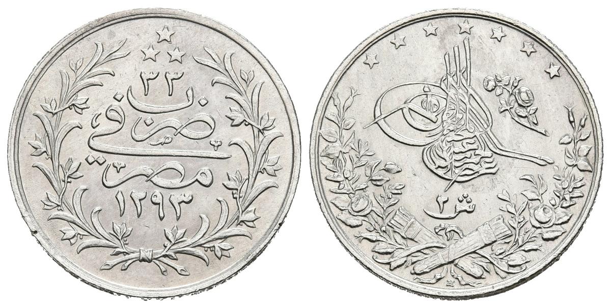 EGIPTO. 2 Qirsh (Ar. 2,77g/19mm). 1876 (1293AH). Abdul Hamid II. (Km#293). EBC.