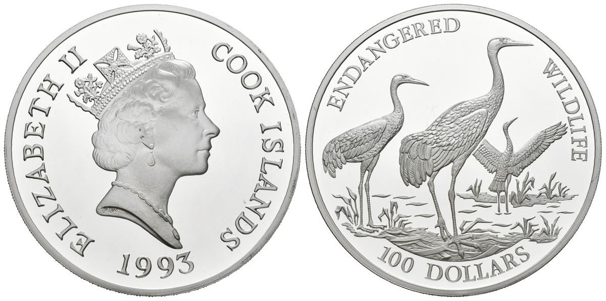 ISLAS COOK. 100 Dóllars (Ar.156,72g/65mm). 1993. Fauna en peligro de extinción. (Km#158). PROOF. Incluye certificado de autenticidad.