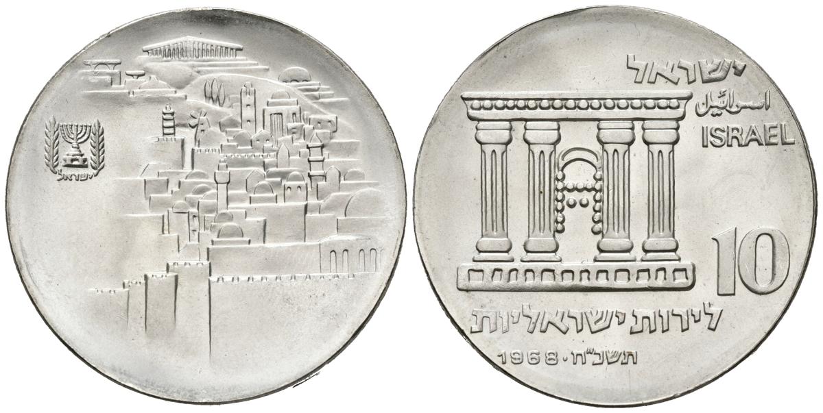 ISRAEL. 10 Lirot. (Ar. 25,98g/37mm). 1968. XX Aniversario de la Independencia. (Km#51). SC.
