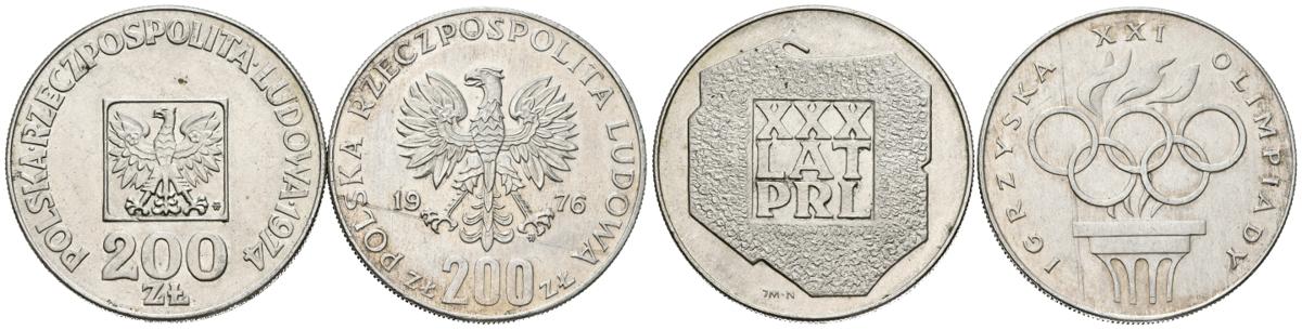 POLONIA. Conjunto de 2 monedas de 200 Zloty de plata acuñados en 1974 y 1976. Alto estado de conservación. A EXAMINAR.