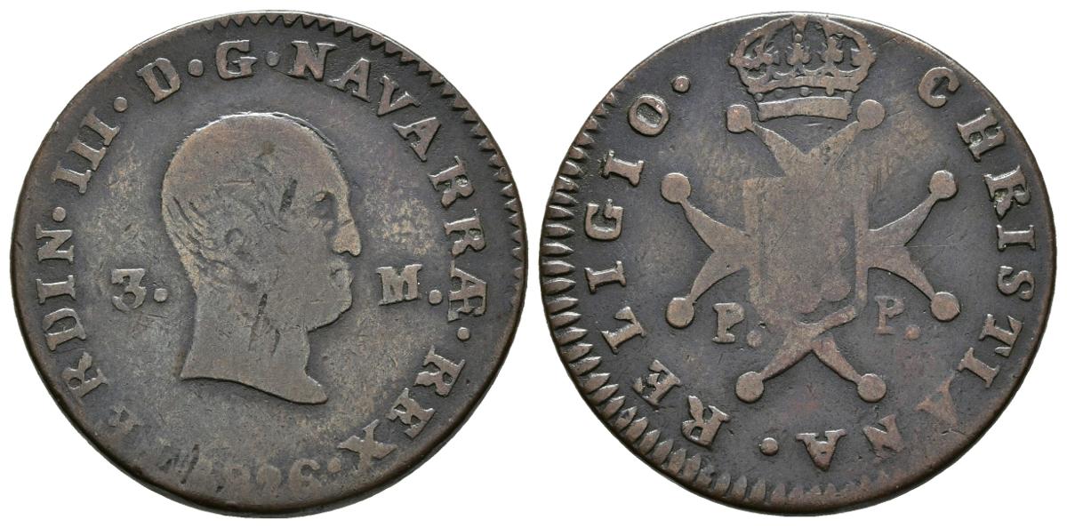FERNANDO VII. 3 Maravedís. 1826. Pamplona. Cal-1644. Ae. 5,75g. BC+.