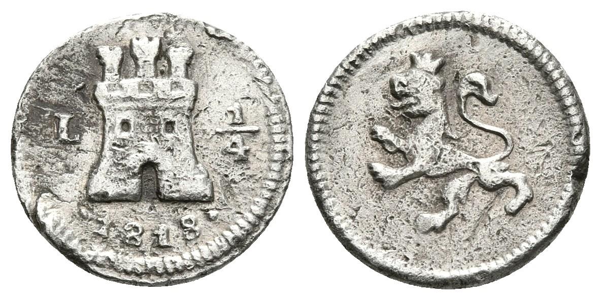 FERNANDO VII. 1/4 de Real. 1818. Lima. Cal-1459. Ar. 0,86g. MBC-.