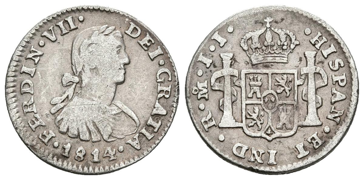 FERNANDO VII. 1/2 Real. 1814. México JJ. Busto imaginario. Cal-1345. Ar. 1,59g. MBC-.