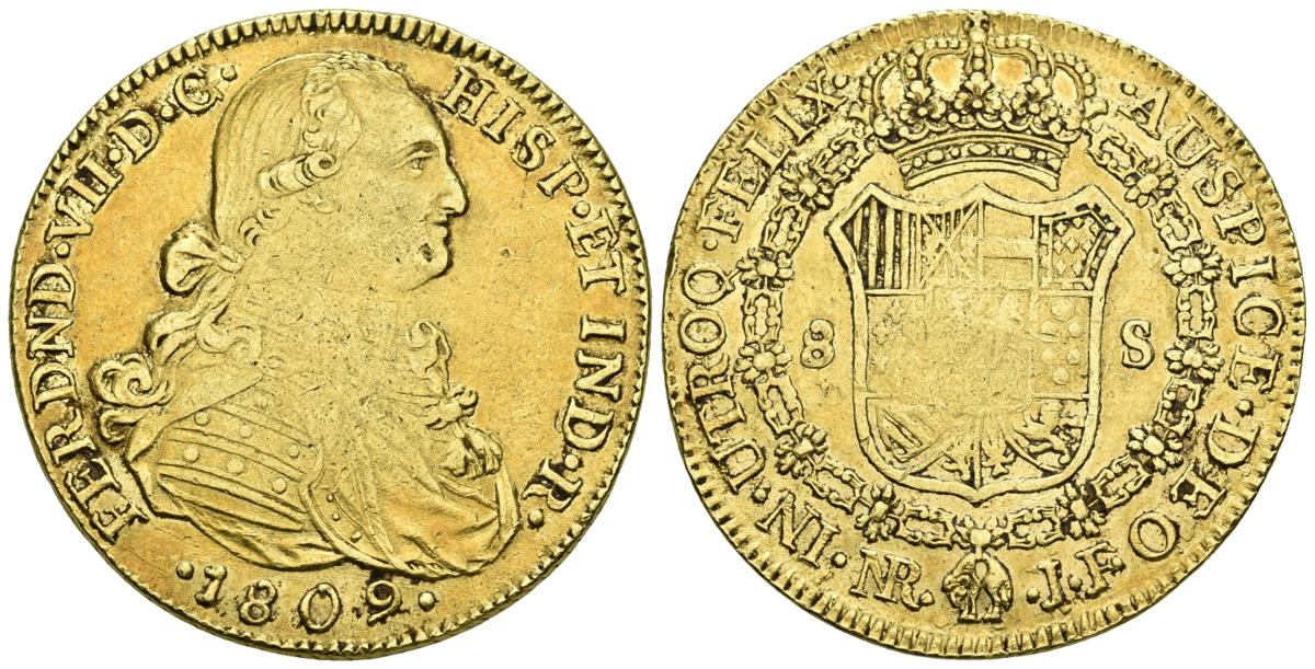 FERNANDO VII. 8 Escudos. 1809. Santa Fe de Nuevo Reino JF/JJ. Cal-94var; Cal. Onza. 1313. Au. 27,08g. MBC.
