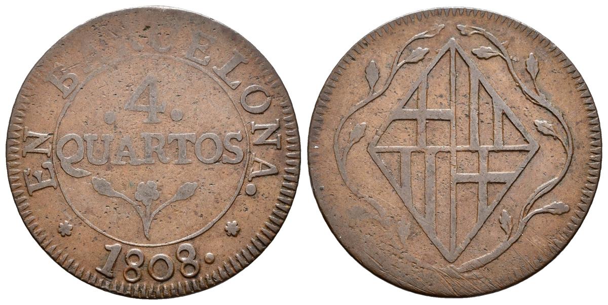 JOSE NAPOLEON. 4 Cuartos. 1808. Barcelona. Cal-67. Ae. 7,88g. MBC-. Escasa.