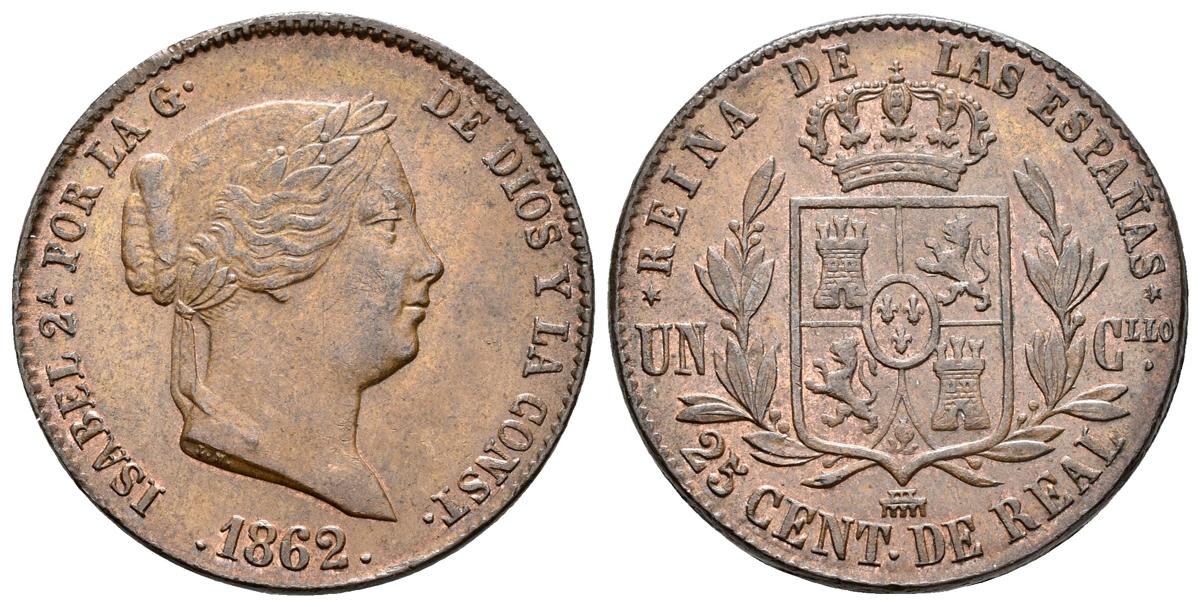 ISABEL II. 25 Céntimos de Real. 1862. Segovia. Cal-597. Ae. 9,40g. EBC-/MBC+.