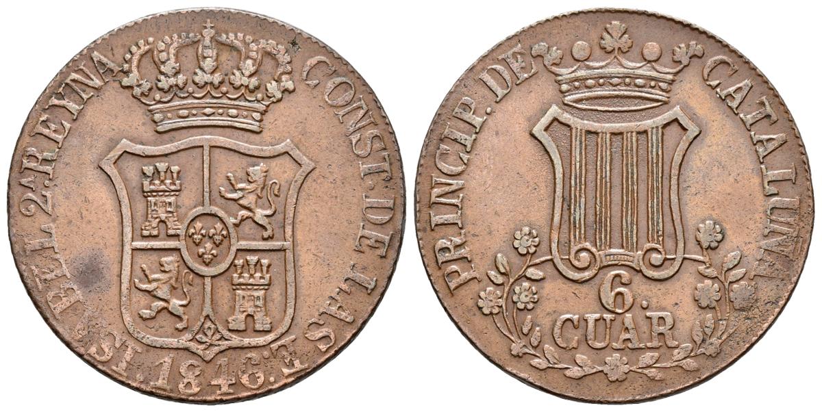 ISABEL II. 6 Cuartos. 1846. Barcelona. Flores de 7 pétalos. Cal-698. Ae. 14,05g. MBC+.