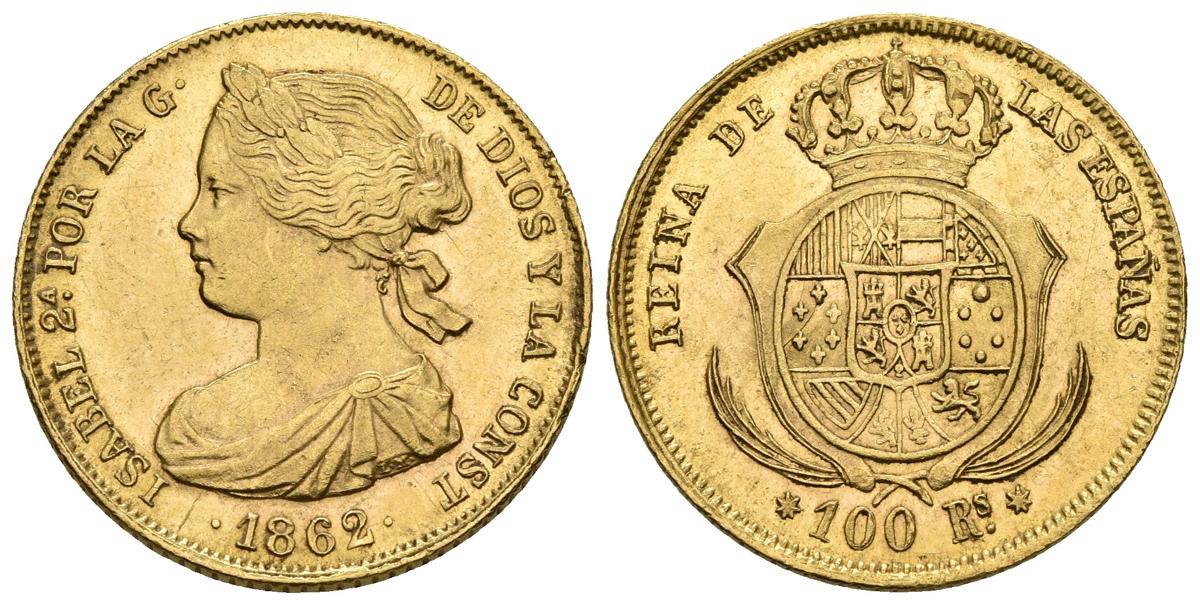 ISABEL II. 100 Reales. 1862. Sevilla. Cal-40. Au. 8,37g. EBC+.