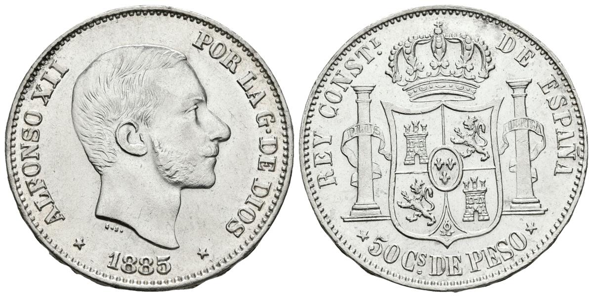 ALFONSO XII. 50 Centavos de Peso. 1885. Manila. Cal-86. Ar. 13,03g. Limpiada. EBC-.