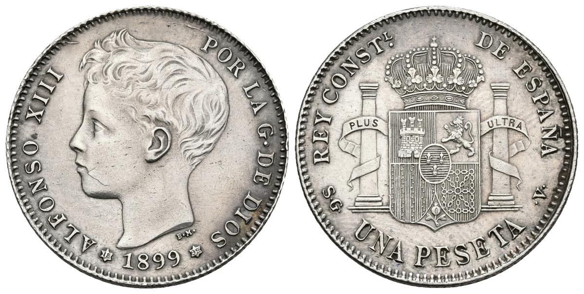 ALFONSO XIII. 1 Peseta. 1899 *18-99. Madrid SGV. Cal-42. Ar. 4,98g. Suave pátina. Bella. EBC/EBC+.