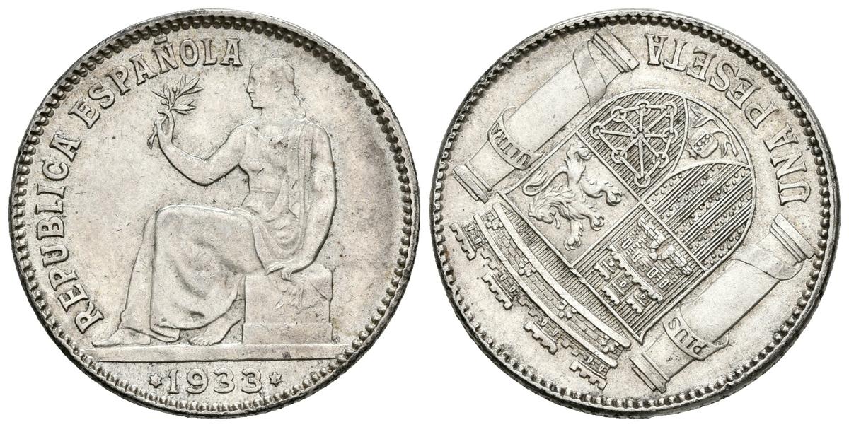 II REPUBLICA. 1 Peseta. 1933 *_-_. Madrid. Reverso girado 30 grados .Cal-1. Ar. 5,00g. MBC+.