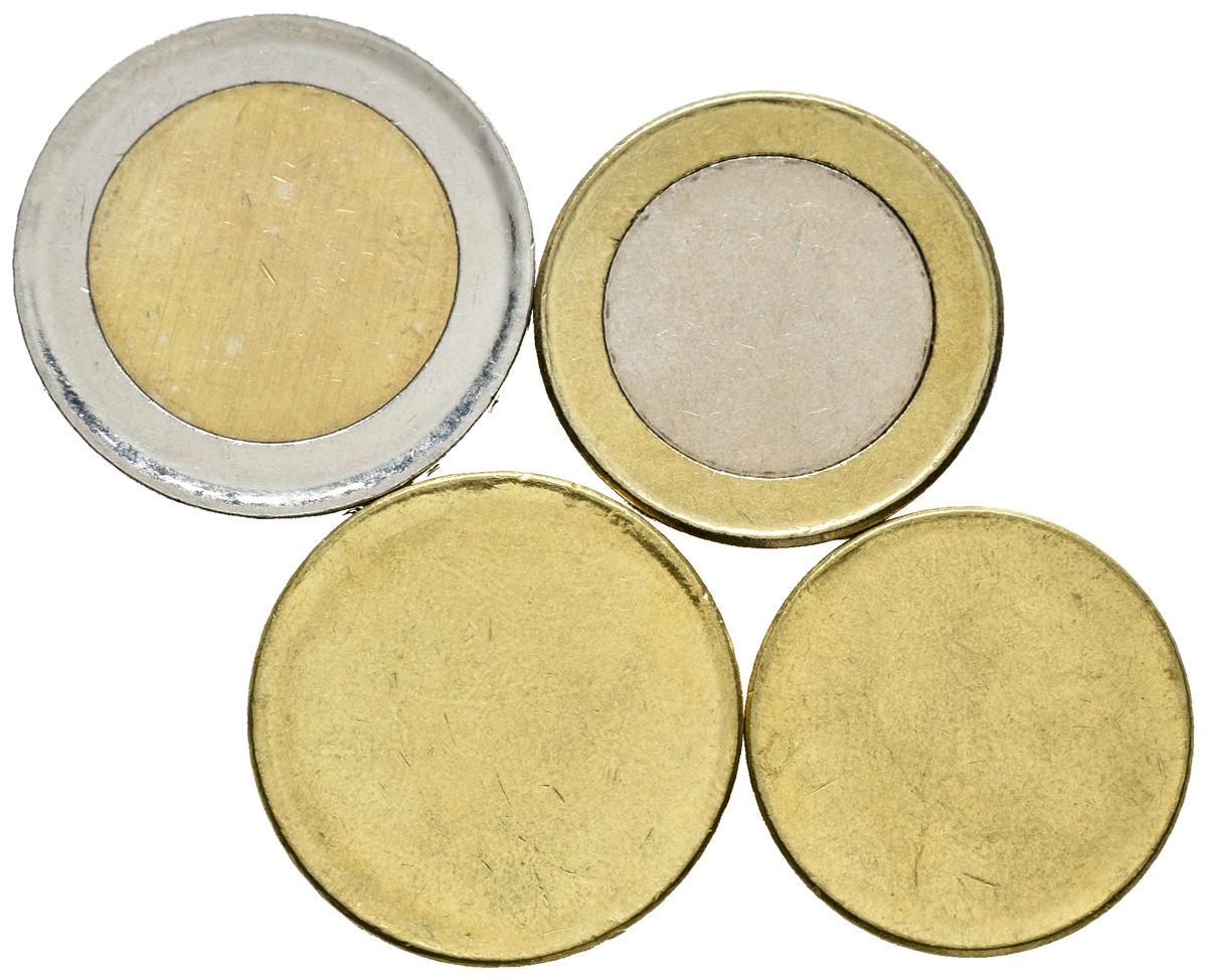 JUAN CARLOS I. Conjunto de 4 cospeles sin acuñar. 20 y 50 Céntimos, 1 y 2 Euros. EBC.