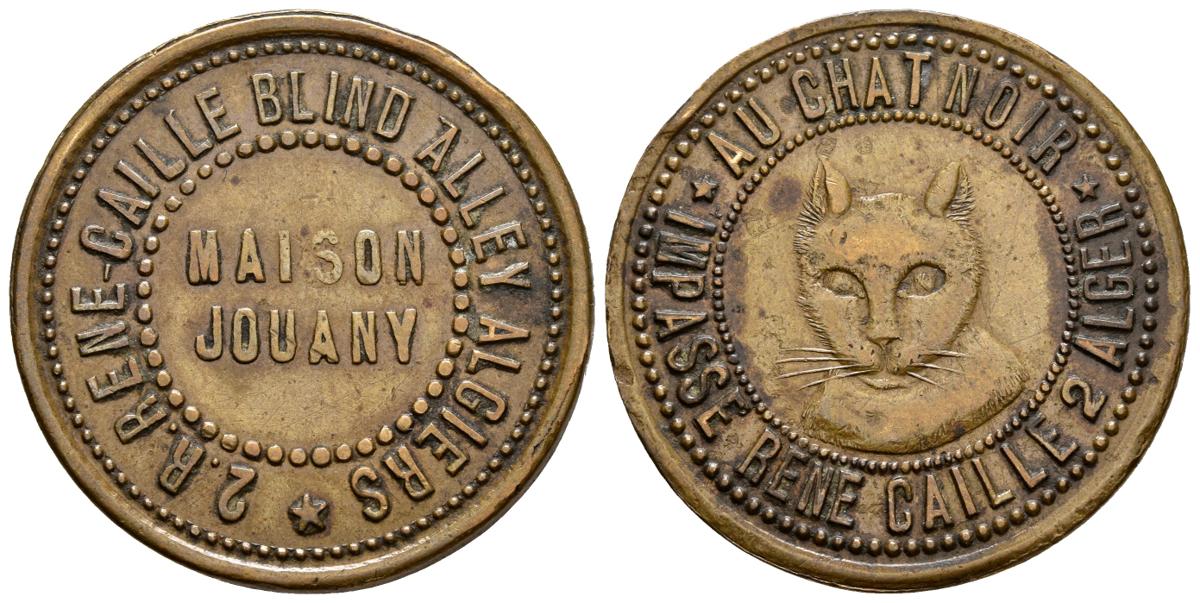 ALGERIA. El gato negro. Ficha de prostíbulo. Maison Jouany. Lec-193. La. 7,19g. MBC.