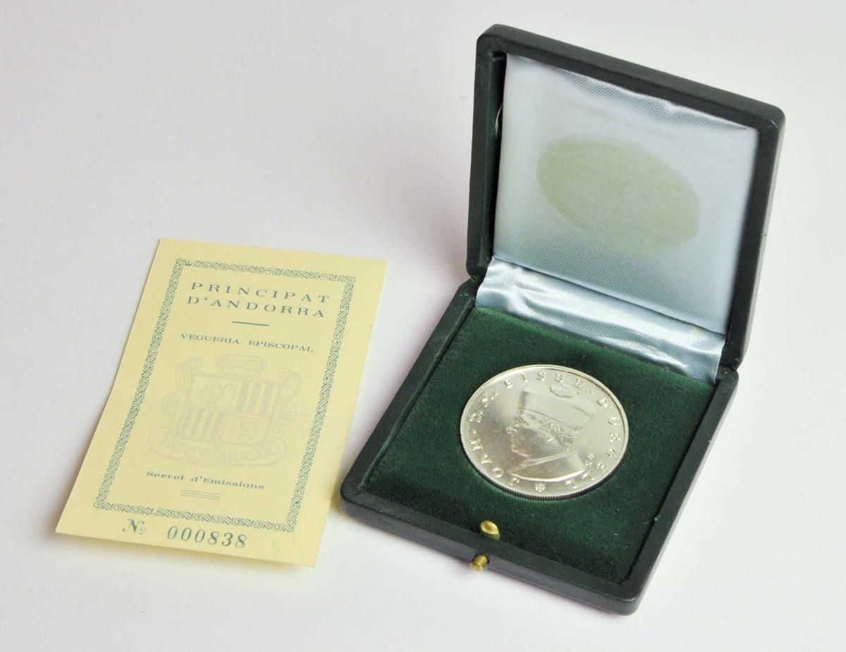 ANDORRA. Joan Bisbe d´Urgell II. 25 Diners. 1984. Km#18. Ar. 20,48g. Presentado en estuche original y certificado. SC.