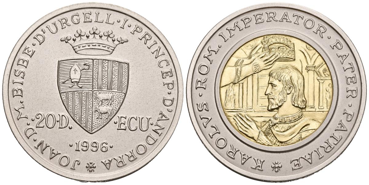 ANDORRA. 1 Ecu. 1996. JOAN D.M BISBE D'URGELL I PRINCEP D'ANDORRA. Ar. 24,50g. Au. 1,50g. PROOF. Sin estuche oficial.