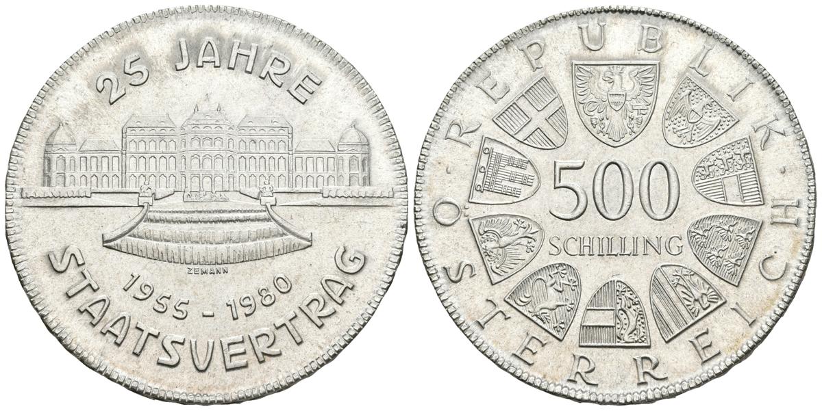 AUSTRIA. 500 Schilling. 1980. Km#2948. Ar. 23,97g. Mínimas marquitas. SC-.