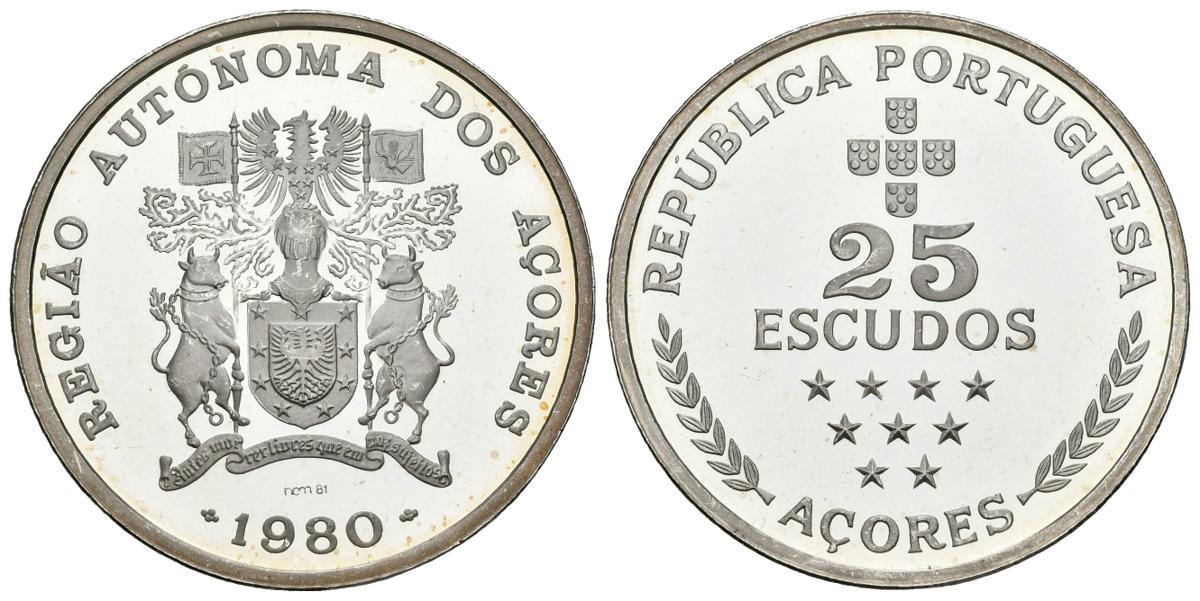 AZORES. 25 Escudos. 1980. Regiao Autónoma dos Açores. Ar. 11,91g. PROOF.