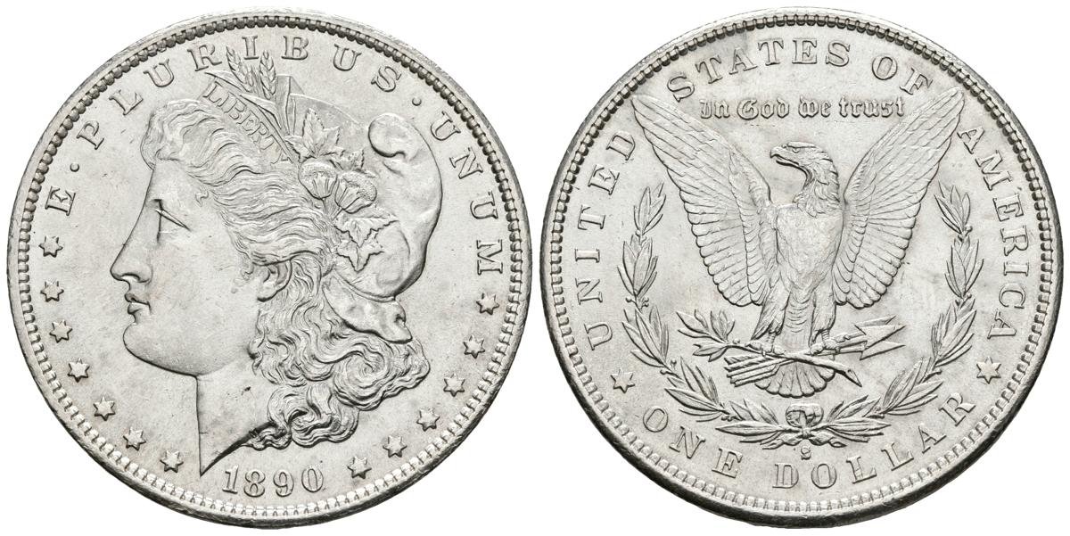 ESTADOS UNIDOS. Dollar. 1890. San Francisco S. Km#110. Ar. 26,72g. Brillo original y marquitas. SC-.